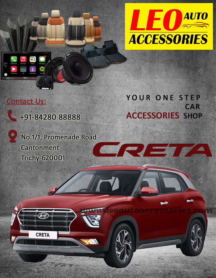 HYUNDAI CRETA All types of accessories available here.. Where else you can find us: What's app : +91 84280 88888 Instagram : https://www.instagram.com/leoautoaccessories/ Facebook : https://www.facebook.com/Leoautoaccessories/ Our Site: https://www.leoautoaccessories.com/ You Tube : https://youtu.be/QyWksd17WMw Thanks for Your Support FOR BUSINESS : annaileoaccessories@gmail.com